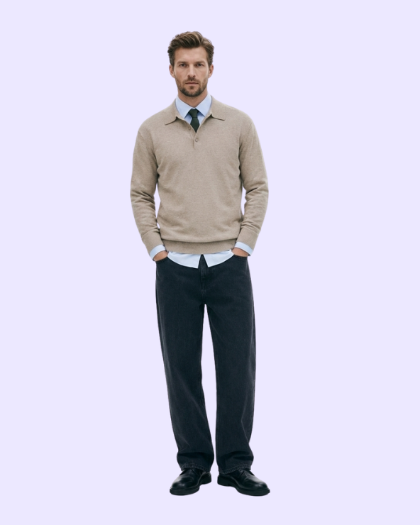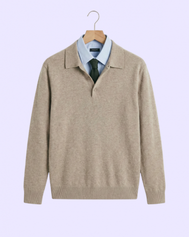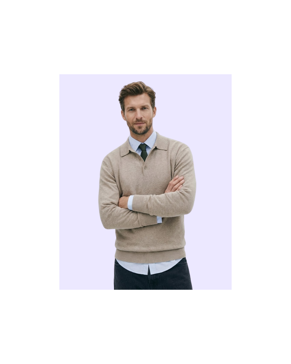 Polo en maille de laine douce. Modèle à manches longues avec col et patte de boutonnage. Bord finement côtelé aux poignets et à la base. Coupe regular pour une silhouette classique et un plus grand confort.